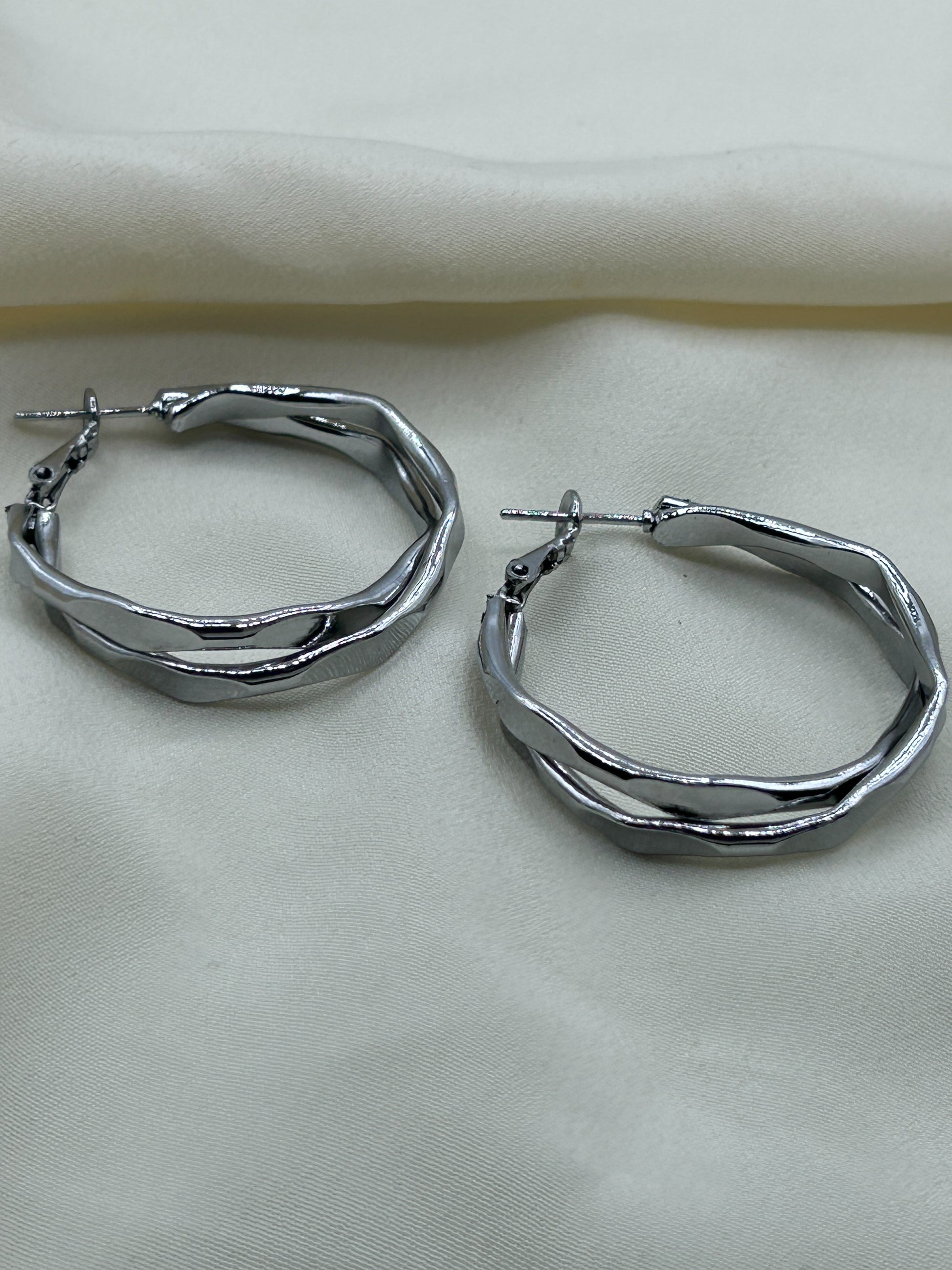 Angled Hoops Earrings Silver