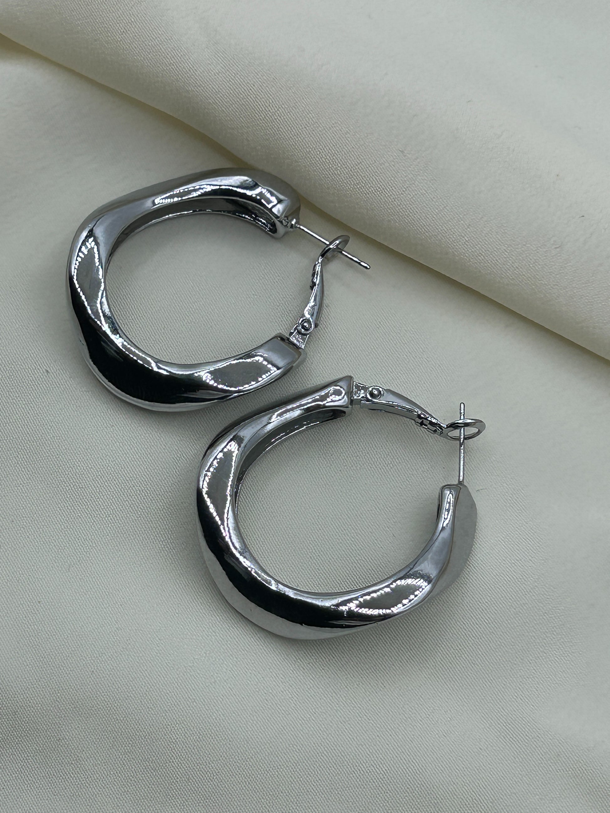 Distorted Hoops Earrings Silver