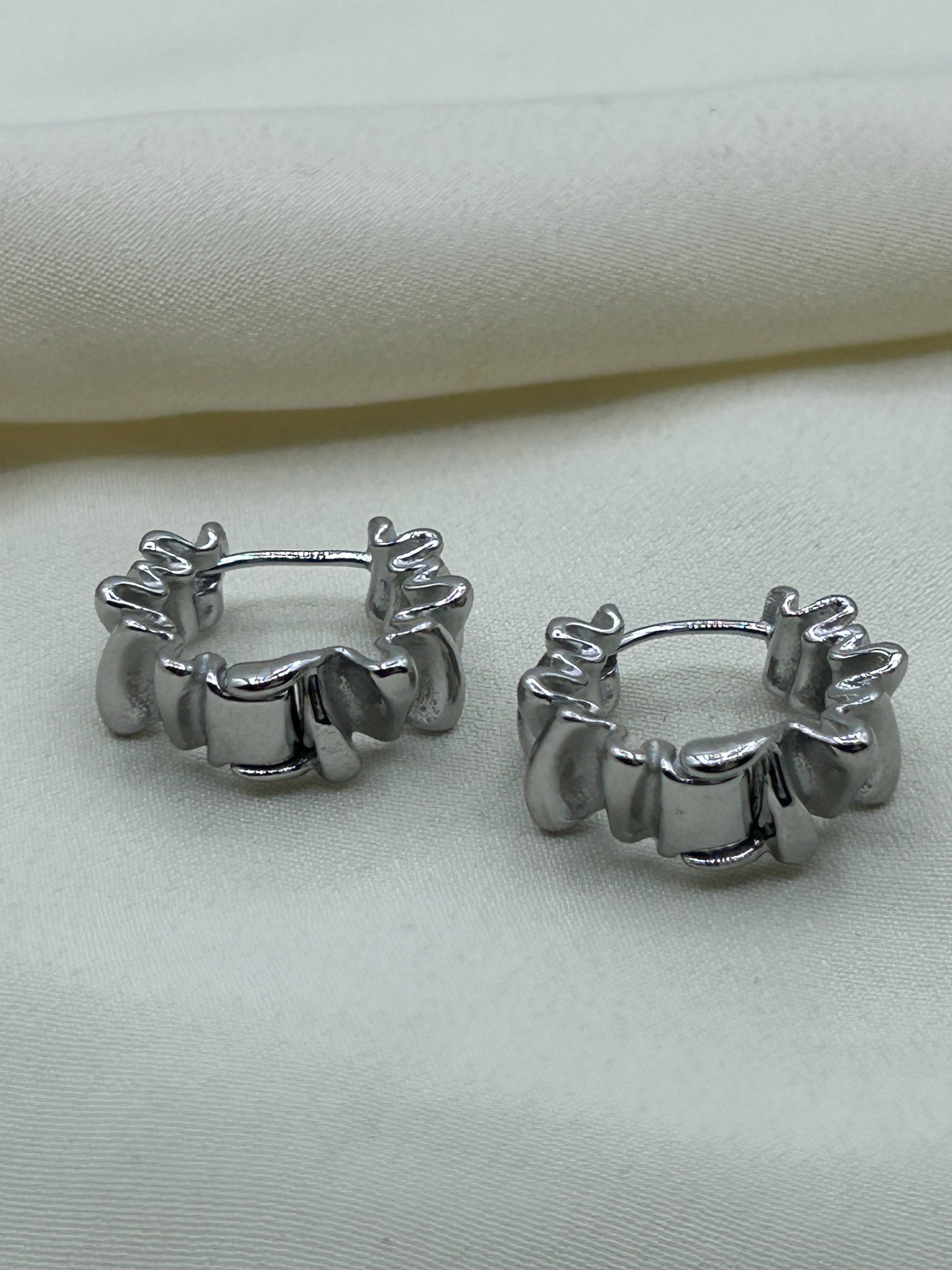 Folded Mini Hoops Earrings Silver